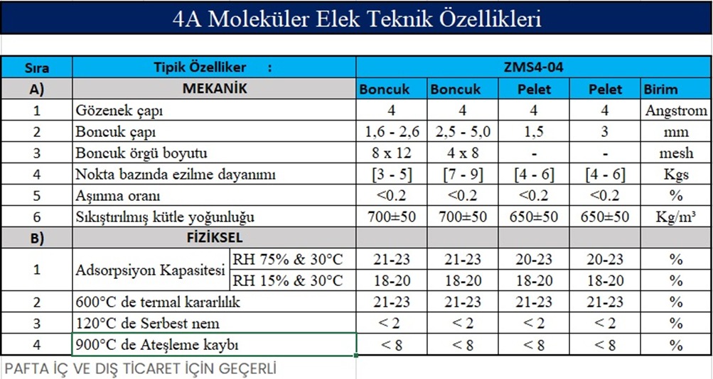 4A moleküler elekler esas olarak;