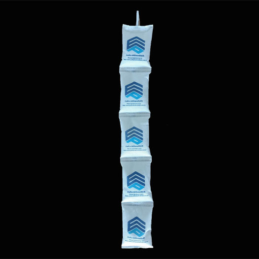 760 gramlık askılı silika jel, yüksek nem riskine sahip büyük hacimli alanlarda kullanılır. Konteyner taşımacılığı, depo rafları, paletli ambalajlar ve endüstriyel ürün sevkiyatlarında tercih edilir. Askılı tasarımı sayesinde kutu ya da konteyner içine kolayca asılır, nemi etkili şekilde emerek ürünleri küf, pas ve bozulmaya karşı korur.